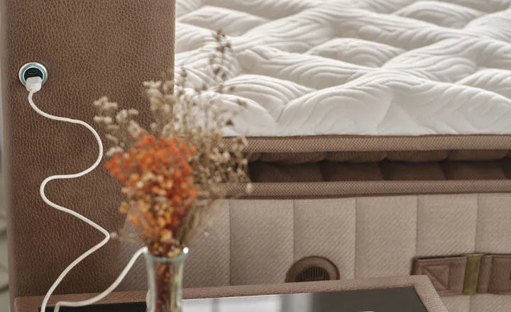 USB & Type-C charging ports + decorative LED light – directly on the headboard for comfort & style in the bedroom.